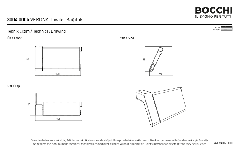 Bocchi Classico Verona Tuvalet Kağıtlığı – Kapaklı Krom