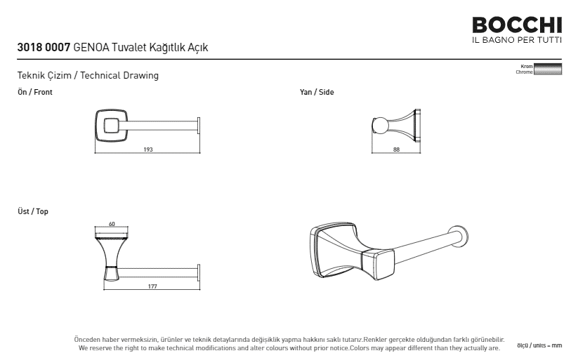 Bocchi Genoa Tuvalet Kağıtlığı – Açık Krom