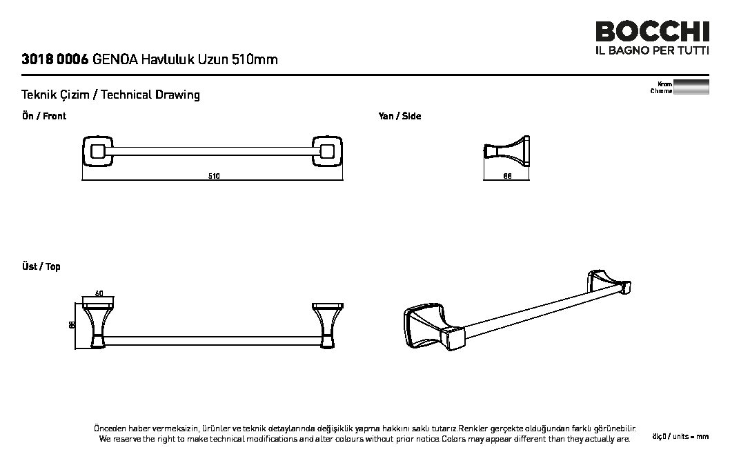 Bocchi Genoa Uzun Havluluk 510 mm Krom