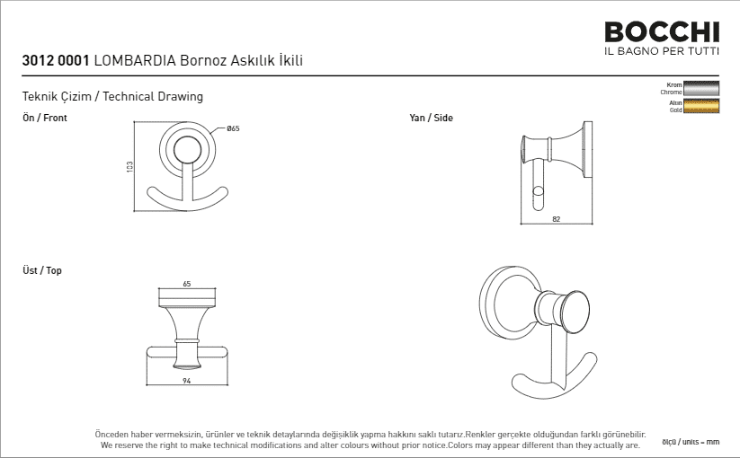 Bocchi Nuova Lombardia Bornoz Askılığı – İkili Krom
