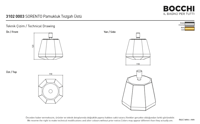 Bocchi Sorrento Pamukluk Tezgah Üstü Altın
