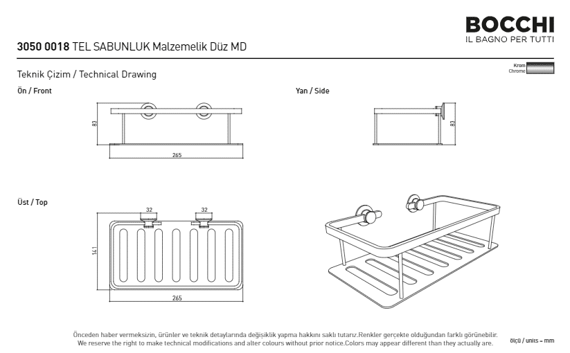 Bocchi Tel Sabunluk Malzemelik Düz MD Tel Sabunluk Malzemelik Düz Krom