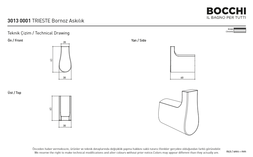 Bocchi Trieste Bornoz Askılığı Krom