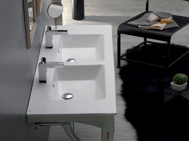 Cerastyle İbiza Etajerli Lavabo 121×51 cm (Çift Hazneli, Çift Batarya Delikli)