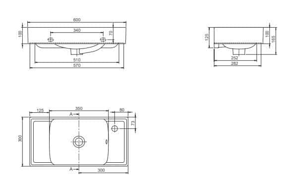 Cerastyle Sharp Etajerli Lavabo 60×30 cm (Sağdan Batarya Delikli)