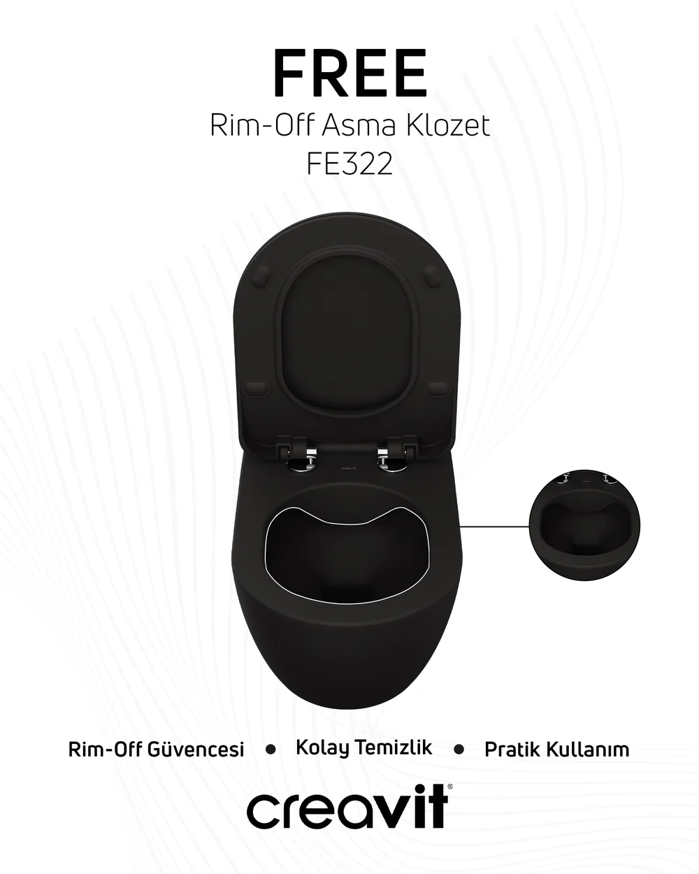 Creavit Free Rim-Off Asma Klozet Kömür Karası FE322-00KK00E-0000