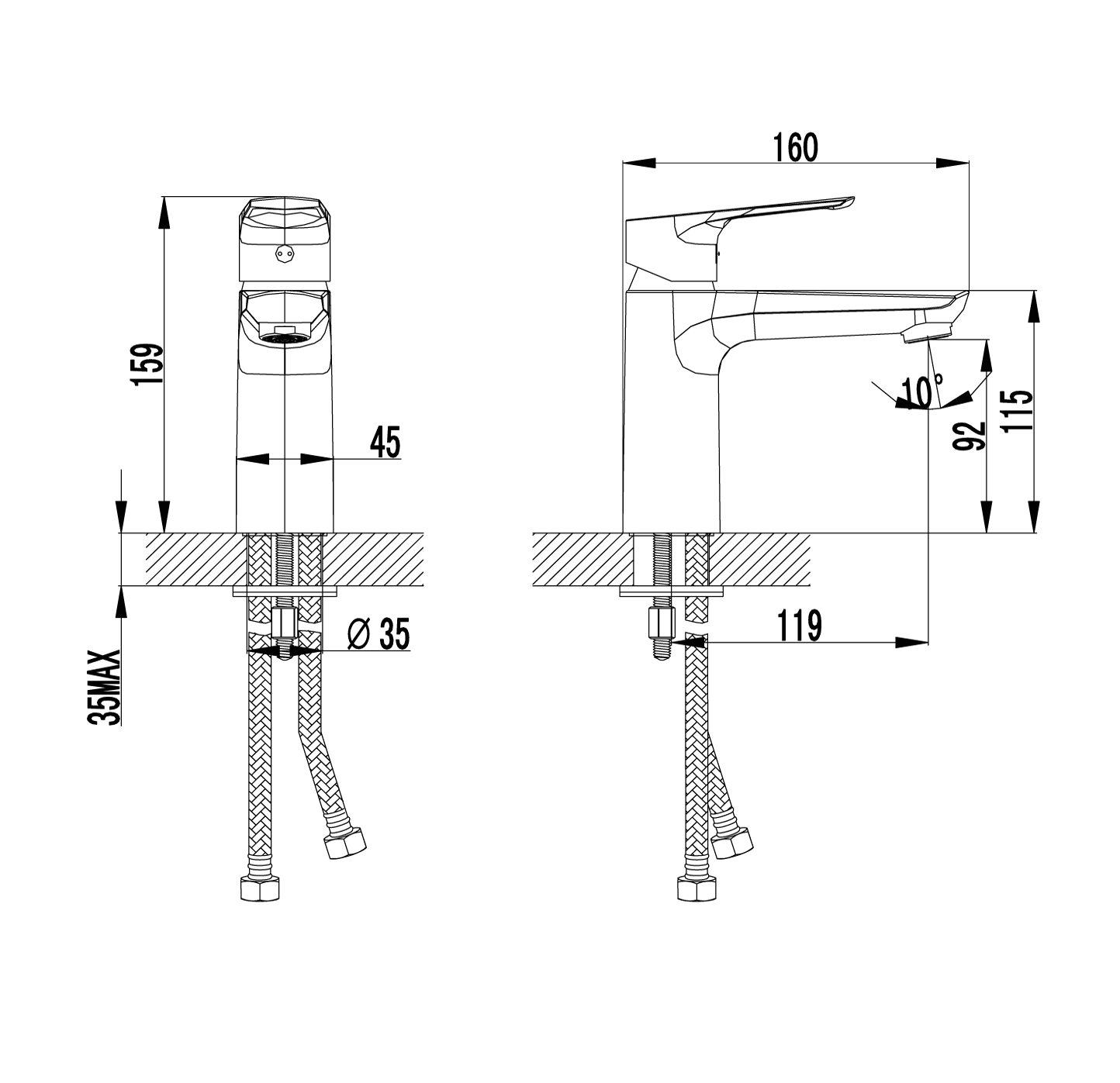 Dahil Olan Montaj Aparatları: 3/8″ – M10 – 50 cm Fleks Hortumlar – Sabitleme Aparatları