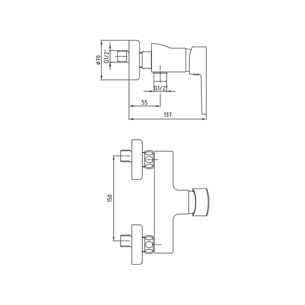 Duş çıkış ekseni 55 mm’dir
