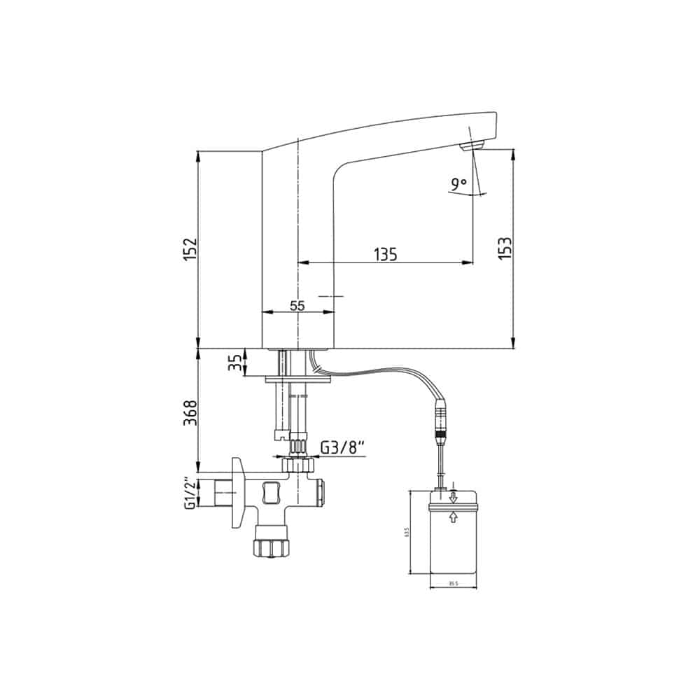 Çıkış ucu yüksekliği 153 mm’dir