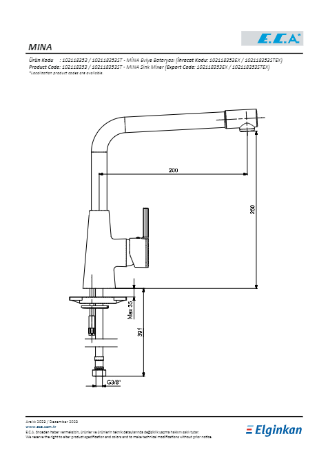 • 3 bar basınçta su akış miktarı dakikada maksimum 7,1 lt’dir
