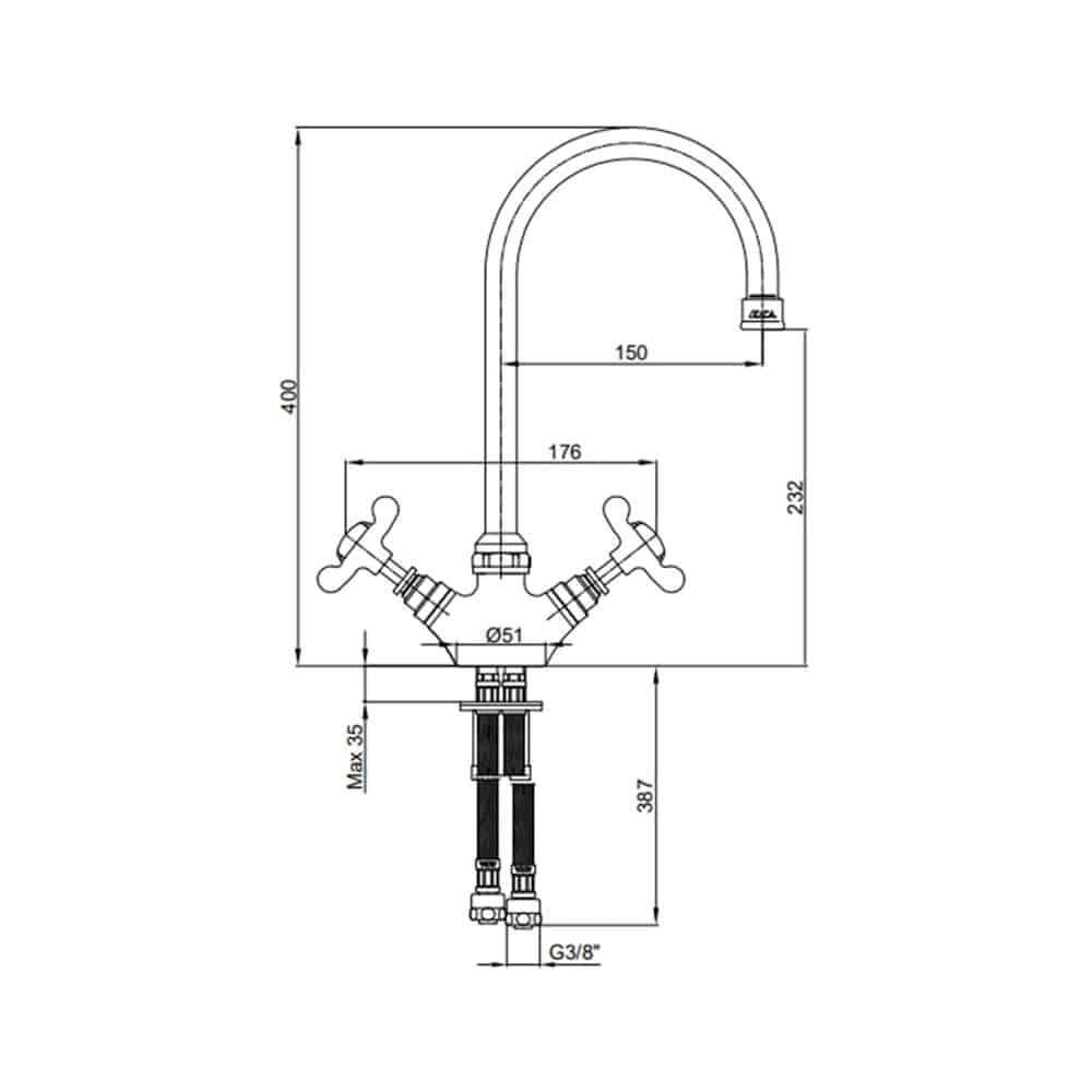 Çıkış ucu yüksekliği 232 mm ‘dir
