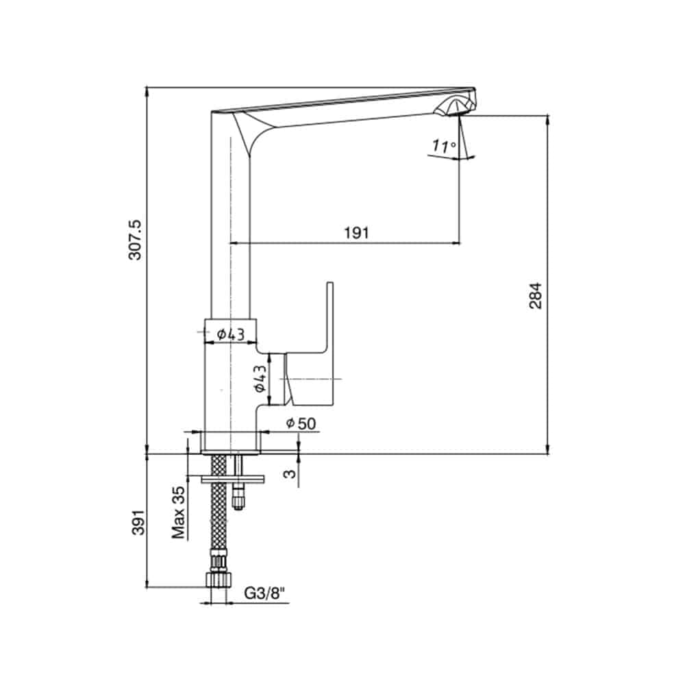 Çıkış ucu yüksekliği 284 mm’dir