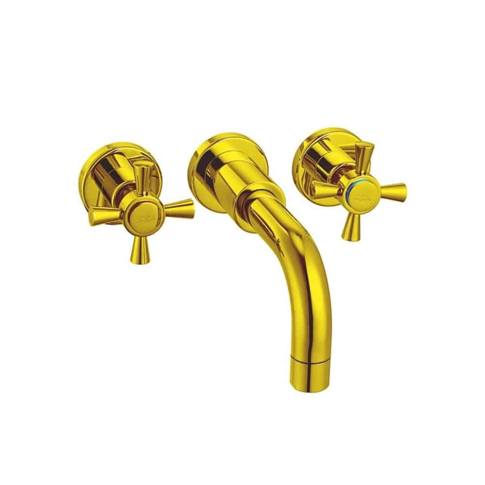 ECA Quadrille Duvardan Üç Delikli Altın Ankastre Lavabo Bataryası
