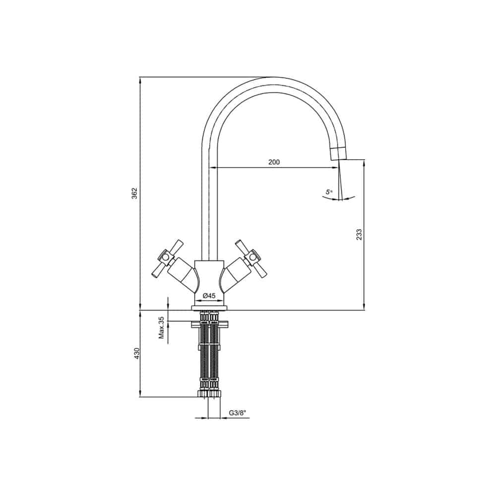 Çıkış ucu yüksekliği 233 mm’dir