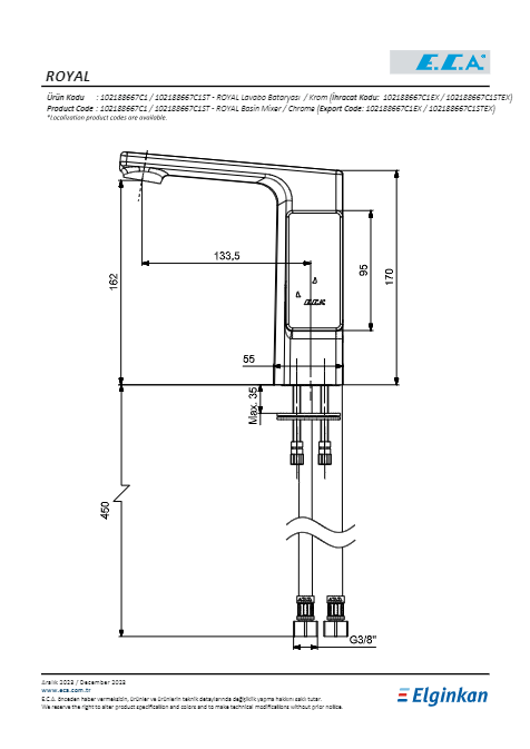 • Çıkış ucu yüksekliği 162 mm’dir