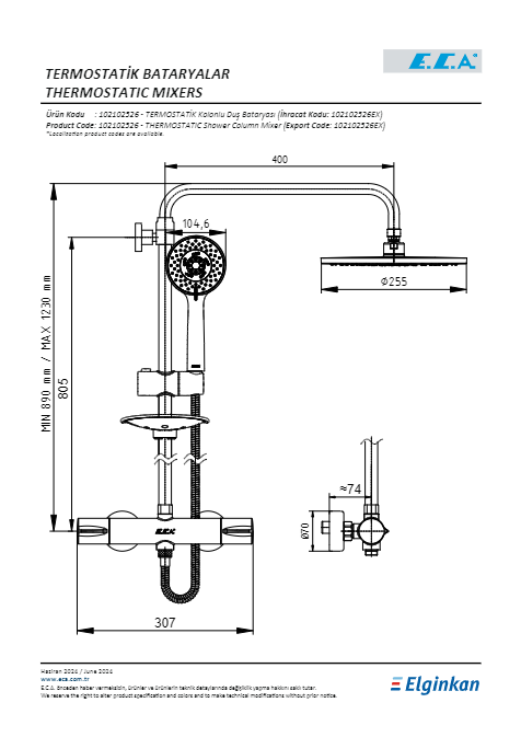 ECA Termostatik Teleskobik Kolonlu Duş Bataryası Ø255 – 102102526