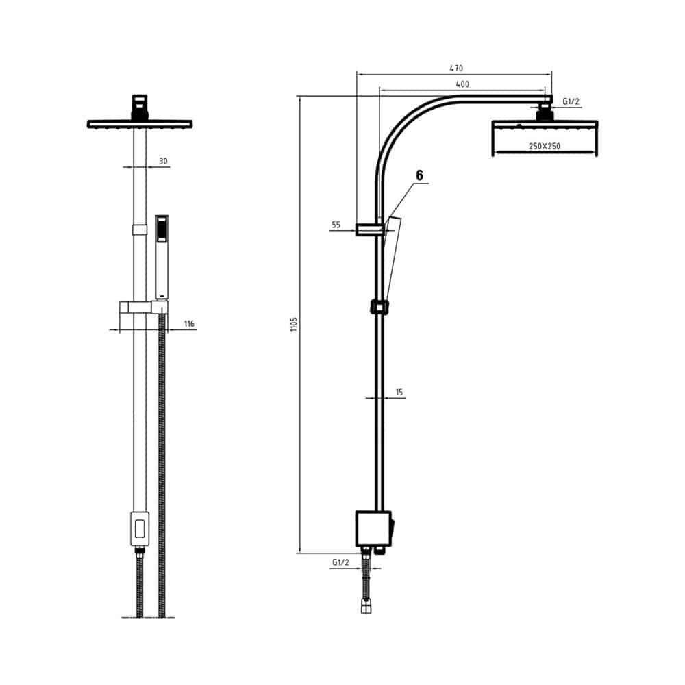 Duş  başlığı akış ekseni 450 mm