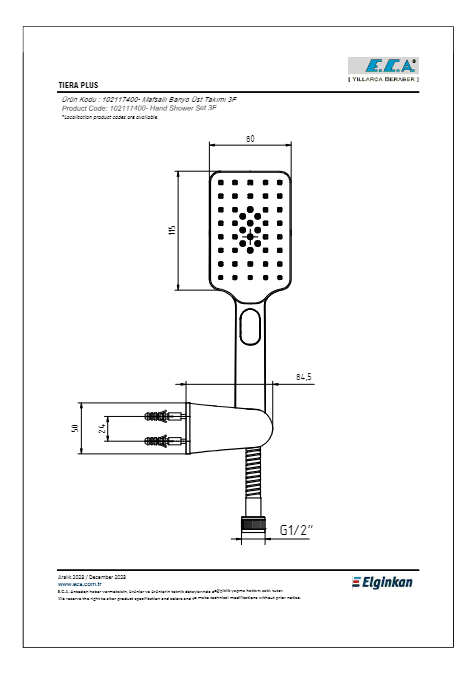 • Düğme ile değiştirilebilen yağmur akış, soft akış ve masaj özellikli 3 fonksiyona sahiptir