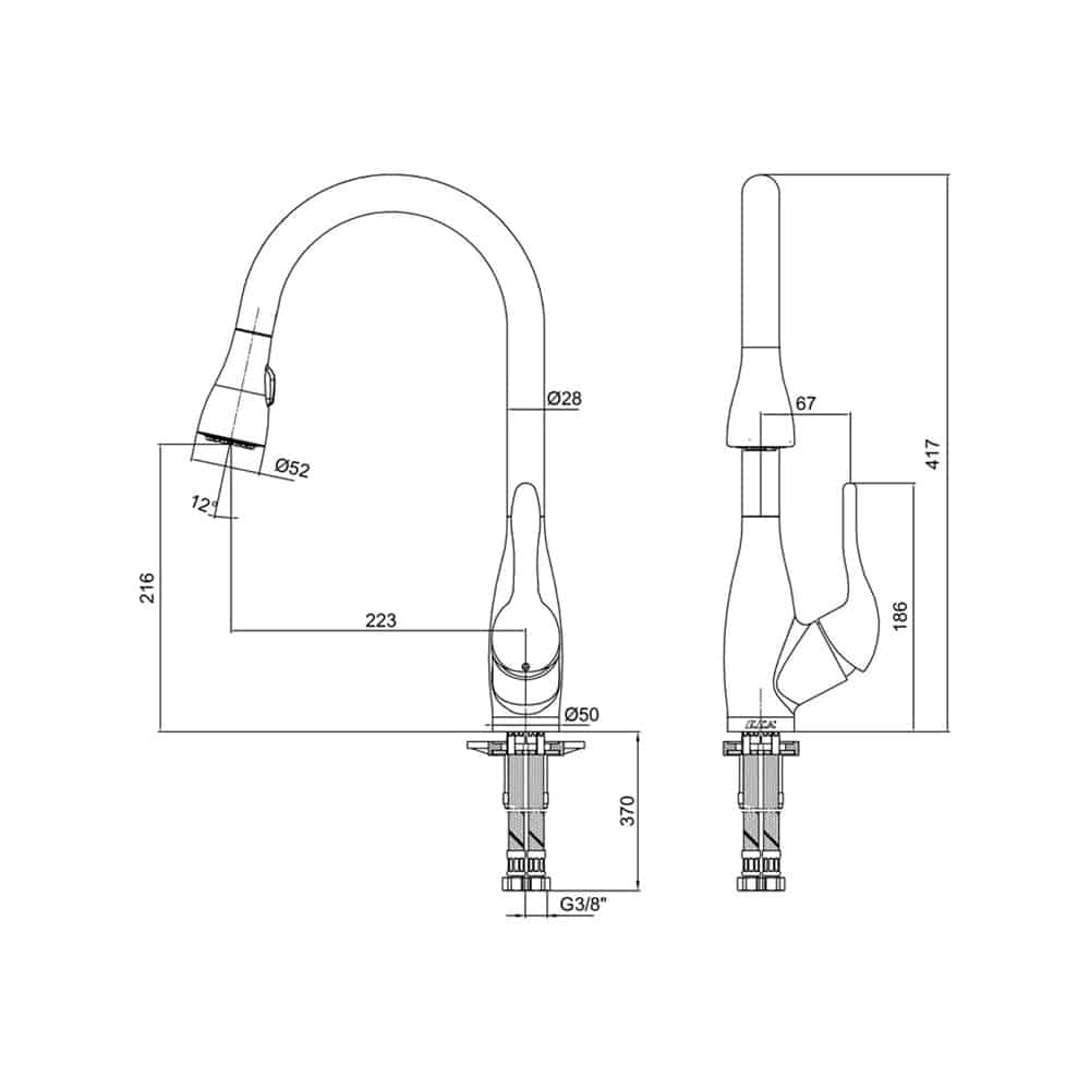 Çıkış ucu yüksekliği 204,5 mm’dir