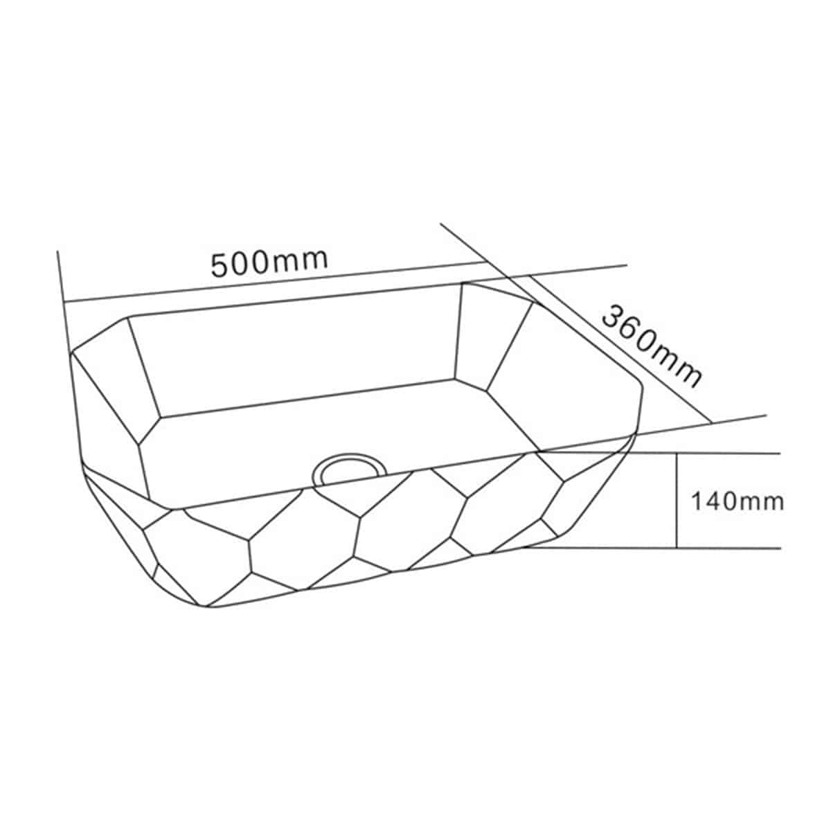 *Köşesiz bir dikdörtgen şekline sahip ince altın petek desenleri olan tezgah üstü lavabo