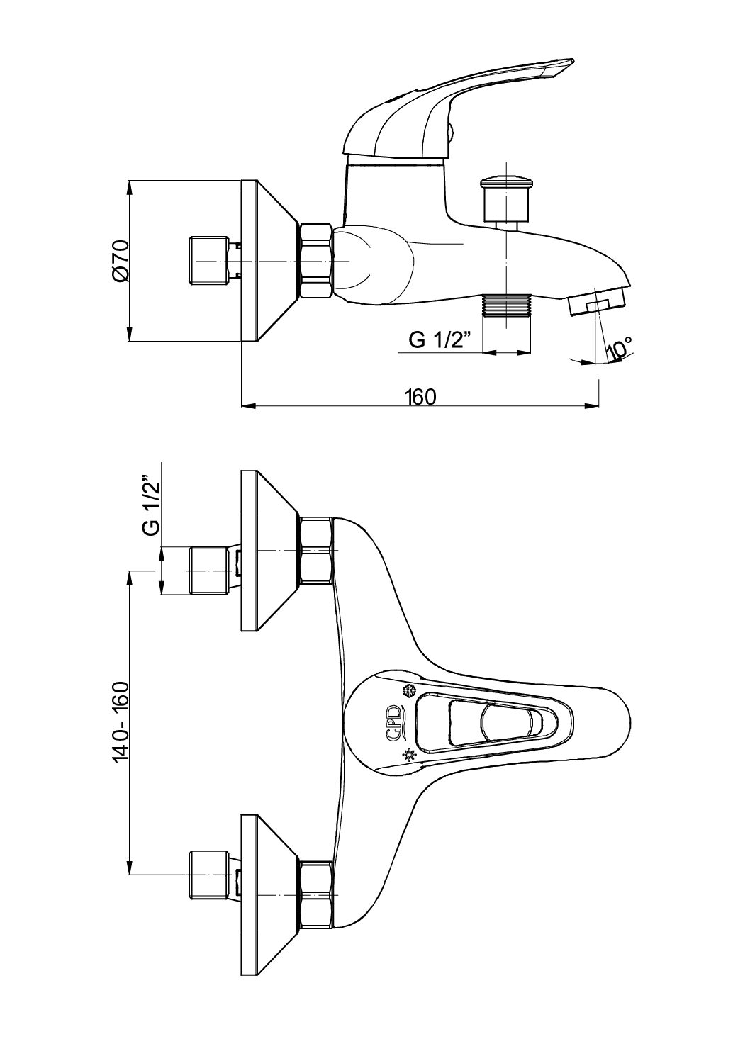 • Çıkış ucu uzunluğu 160 mm
