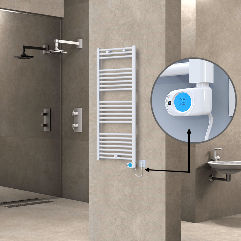 Radiva Haiti Elektrikli Havlupan 500×1200 Düz Beyaz Parlak (Musa Termostat) 600 Watt