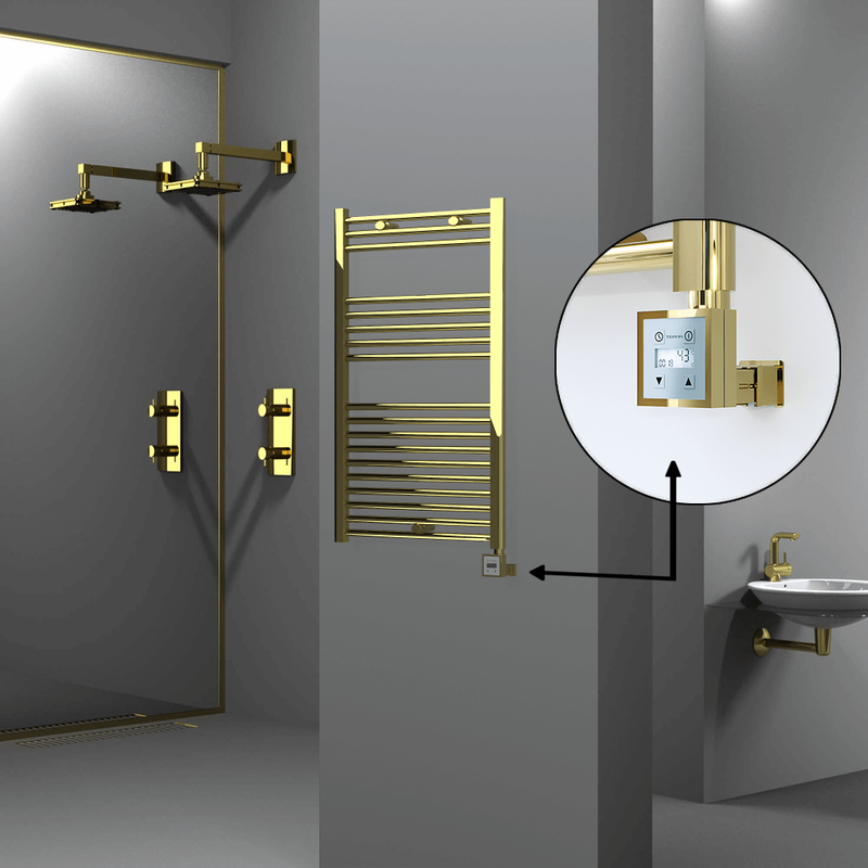 Radiva Haiti Elektrikli Havlupan 600×1000 Düz Altın Parlak (KTX3 Termostat) 300 Watt