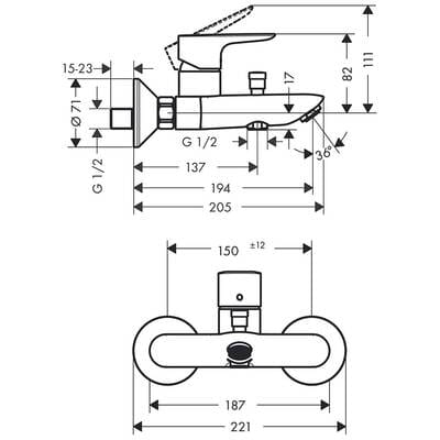 • Merkez mesafe: 150 mm ± 12 mm