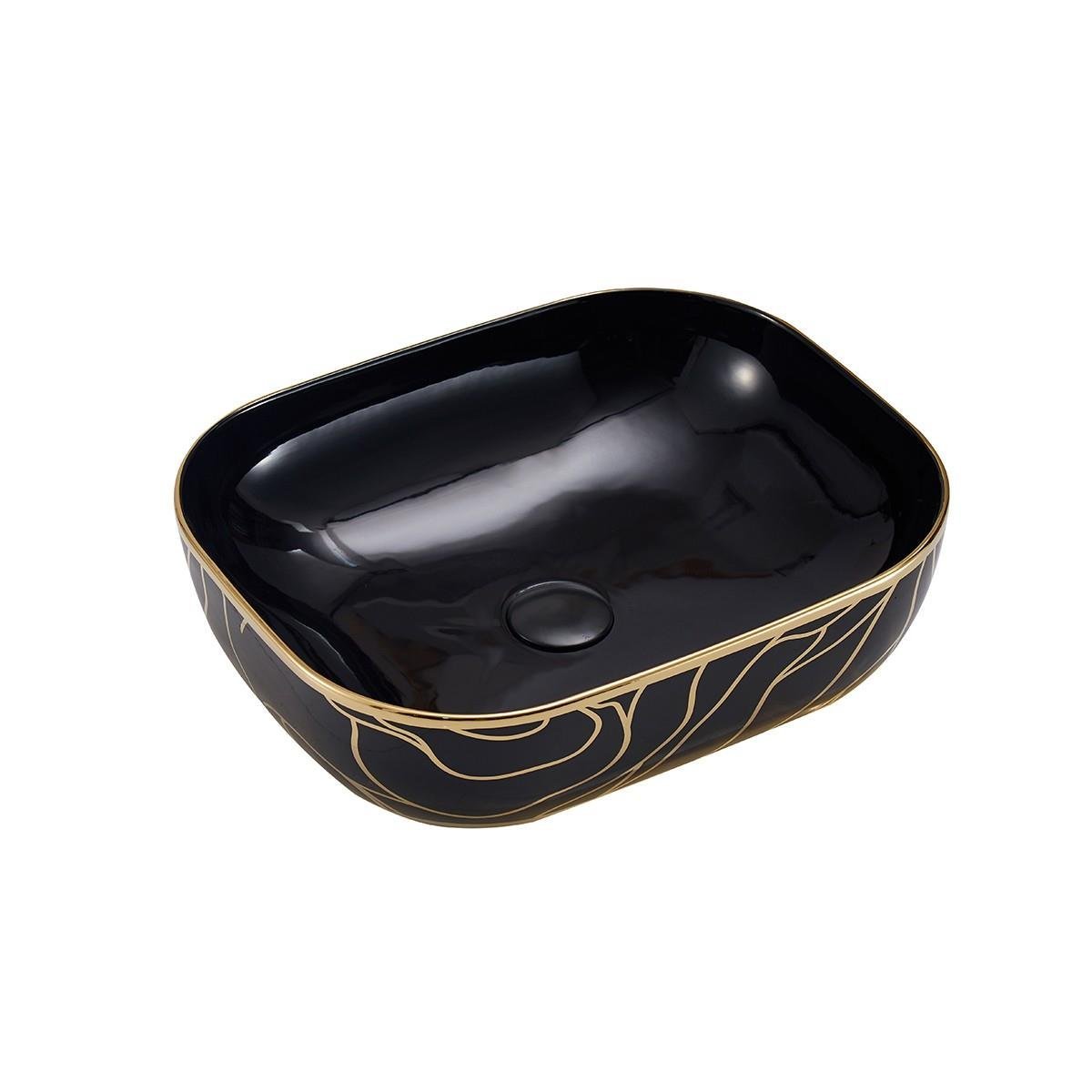*Siyah & altın renk desenli dikdörtgen tezgah üstü çanak lavabo
