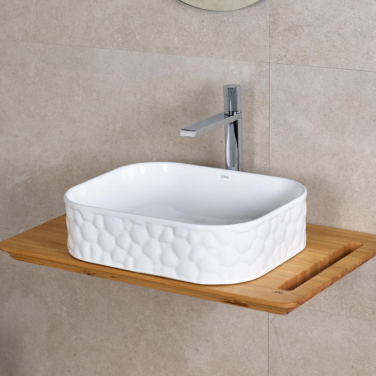 Lena EY-4709 Tezgah Üstü Lavabo Parlak Beyaz