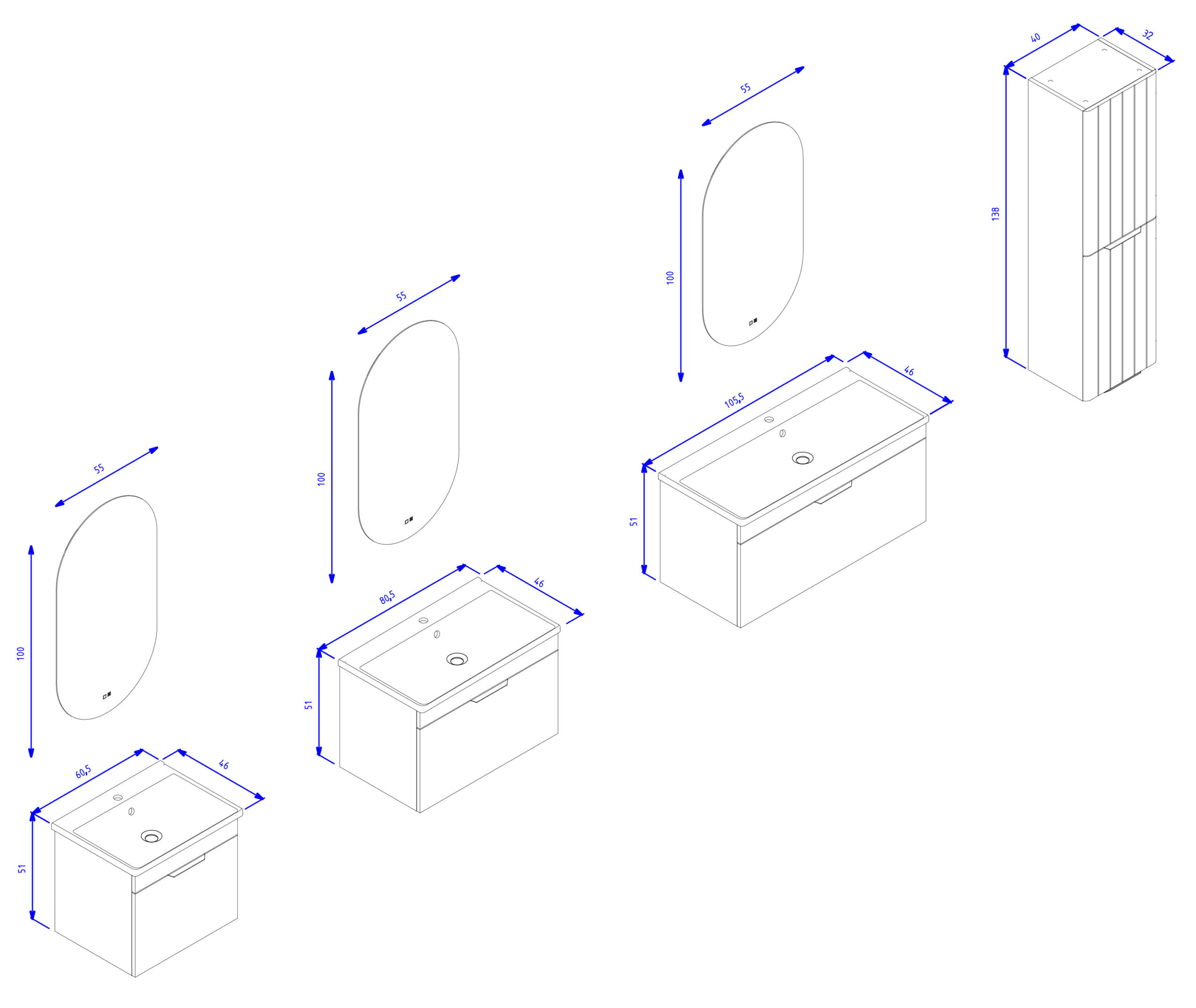 Orka Procida Banyo Dolabı Takımı, 65 cm, Mat Lacivert
