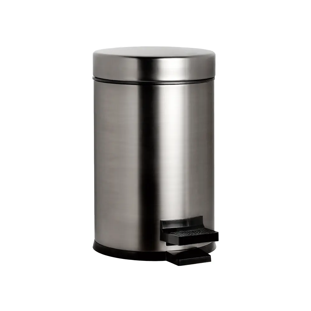Orka 3 Litre Pedallı Çöp Kovası, Fırça Gri