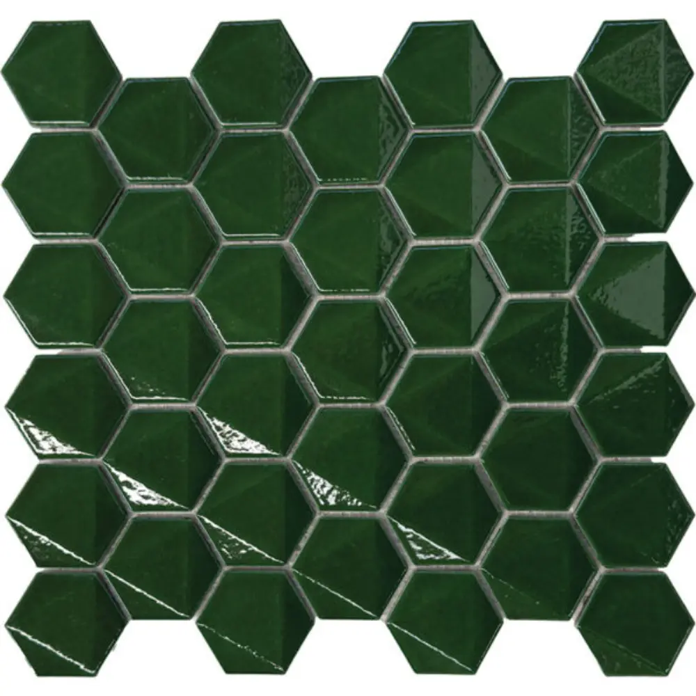 Pukka Tile Zümrüt Yeşili 3D Hexagon Porselen Mozaik
