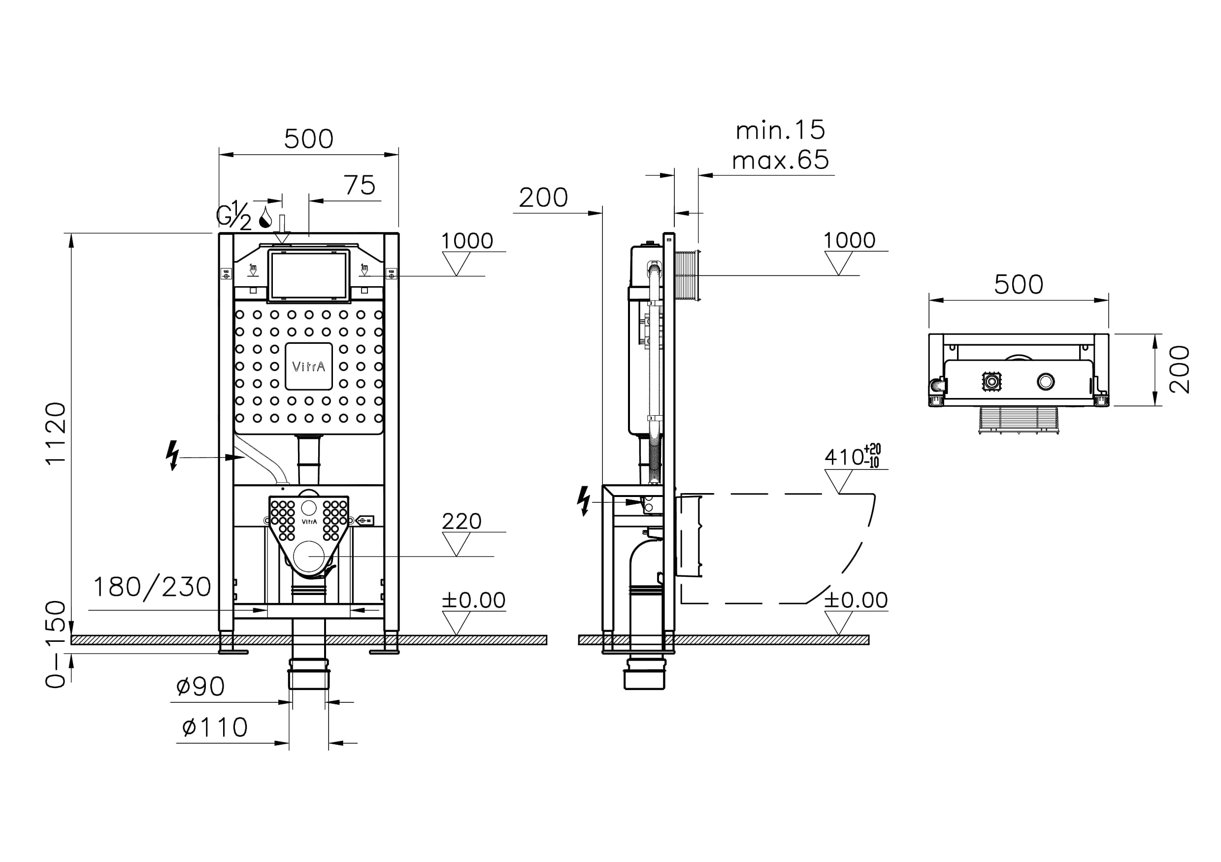 Vitra Asma klozetler için alçıpan duvar içi (yere montaj) uygulama, 2,5/4 L
