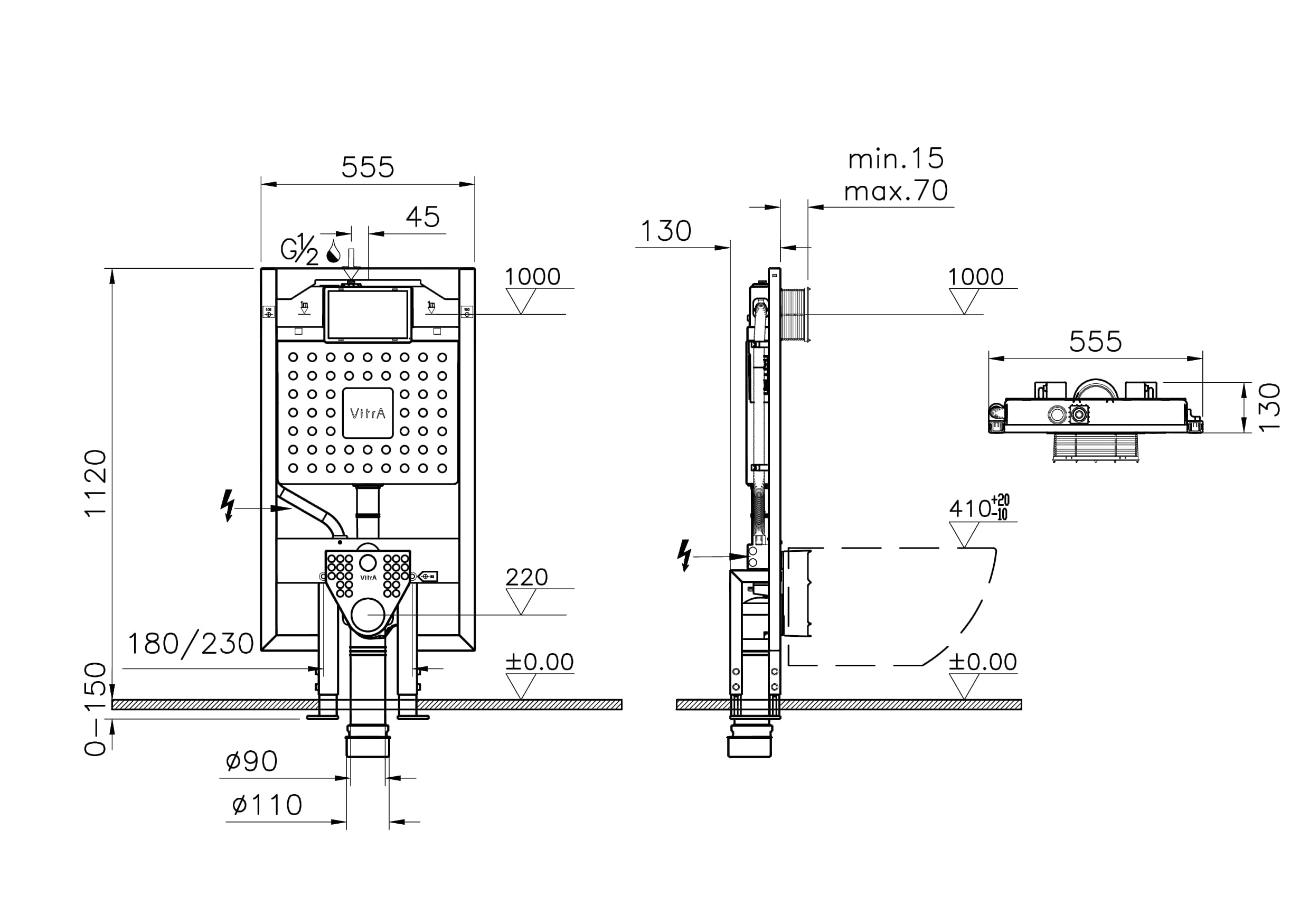 Vitra Asma klozetler için alçıpan duvar içi (yere montaj) uygulamalı, 2,5/4 L