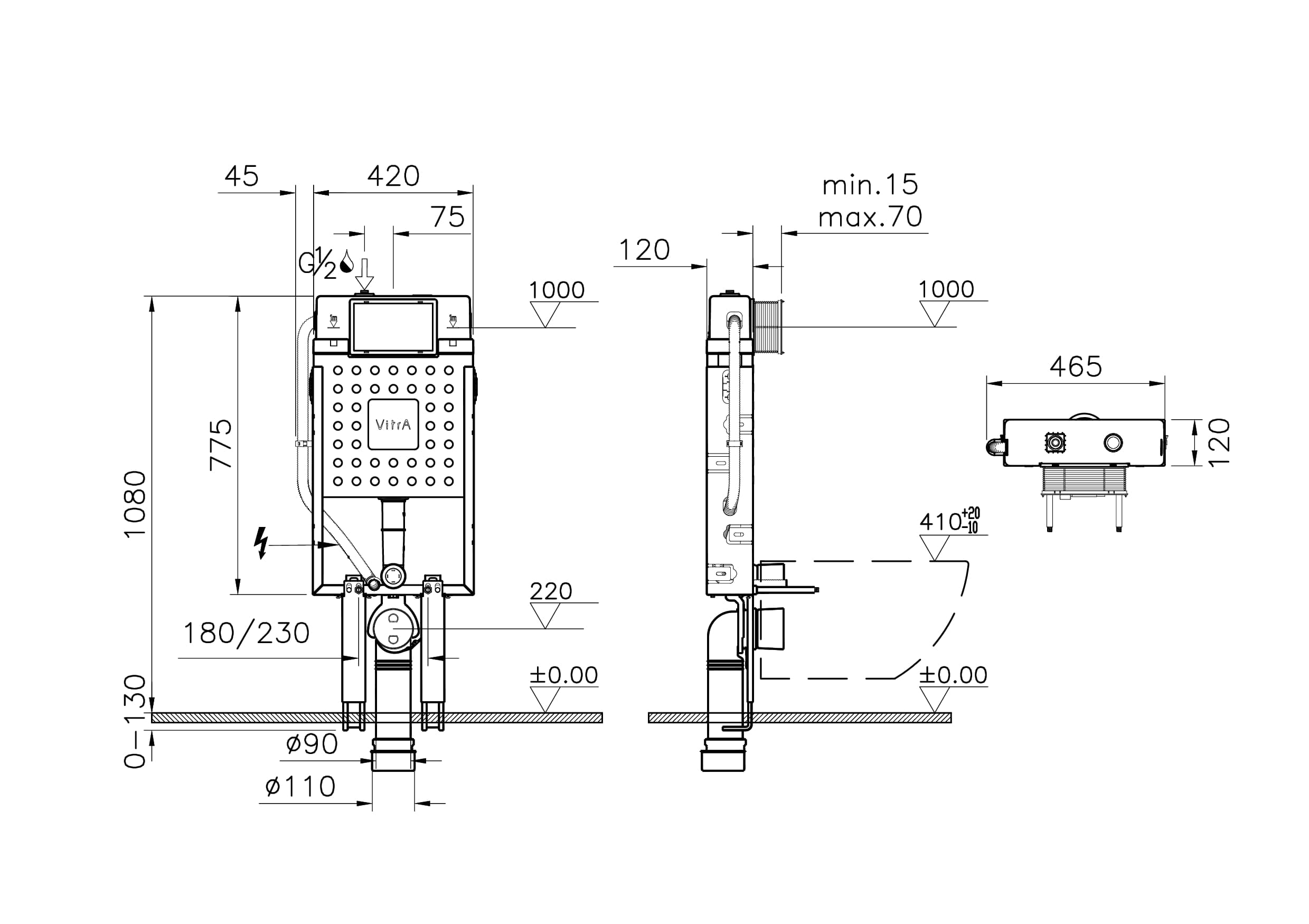 Vitra Asma klozetler için ayarlanabilir kalın metal ayaklı, 2,5/4 L