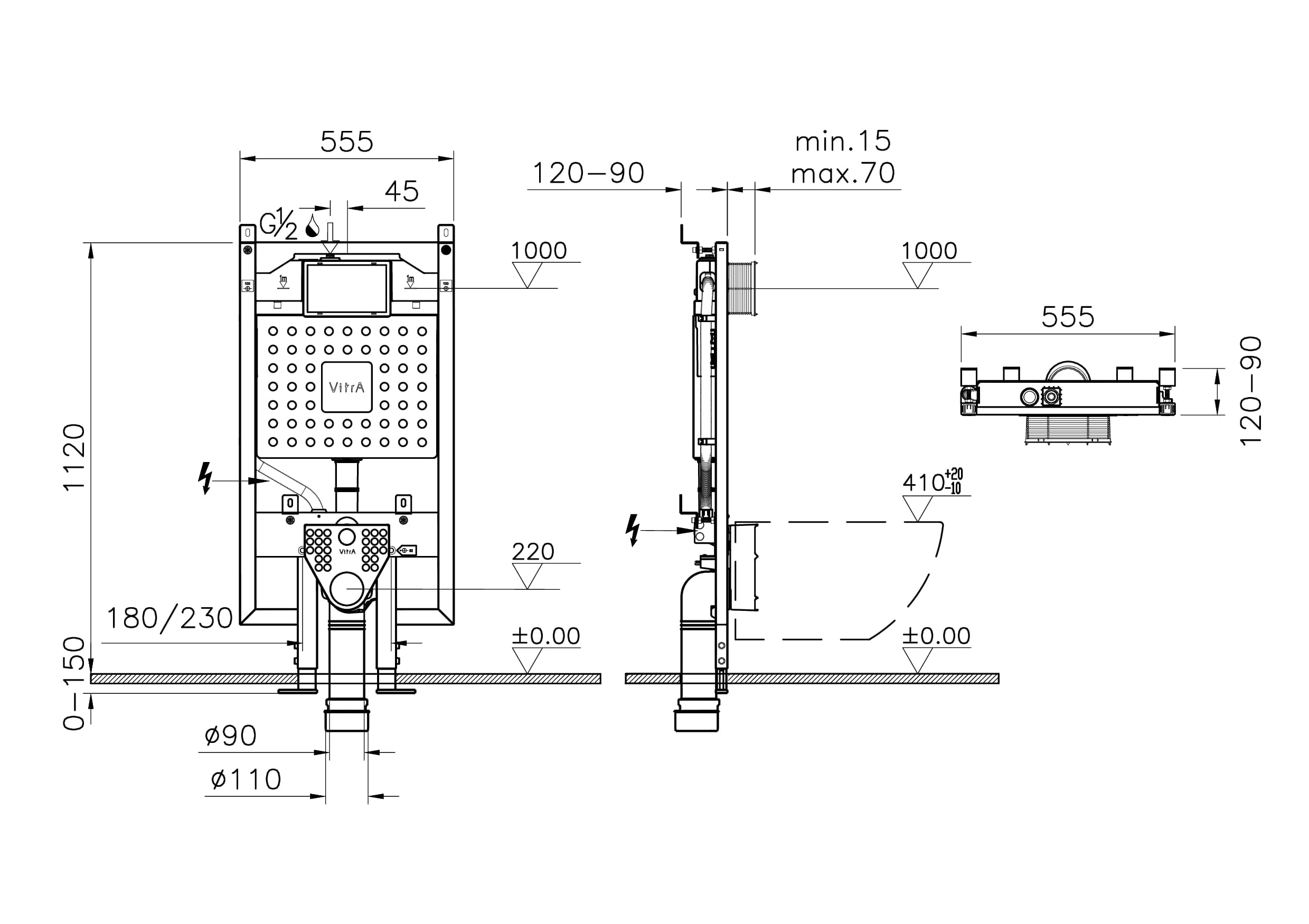 Vitra Asma klozetler için duvara montaj alçıpan uygulama, 2,5/4 L