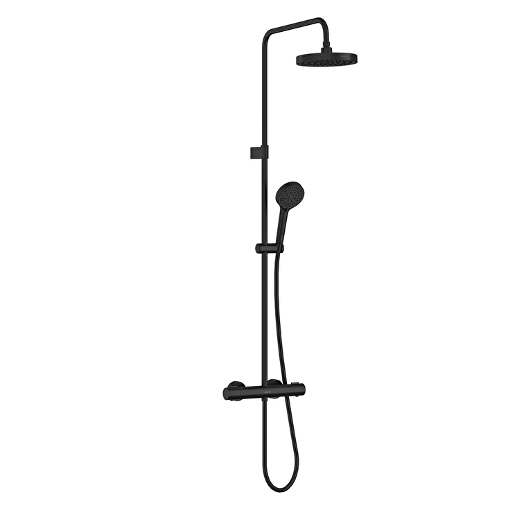 Vitra Base Round 200 Termostatik Duş Bataryalı Duş Sistemi, Mat Siyah