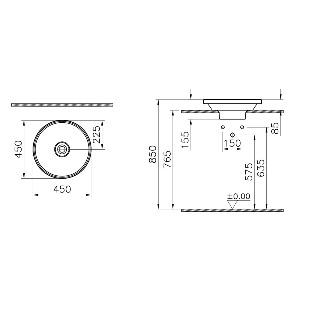 Vitra Gala Çanak Lavabo Yuvarlak, 45×45 cm, Beyaz