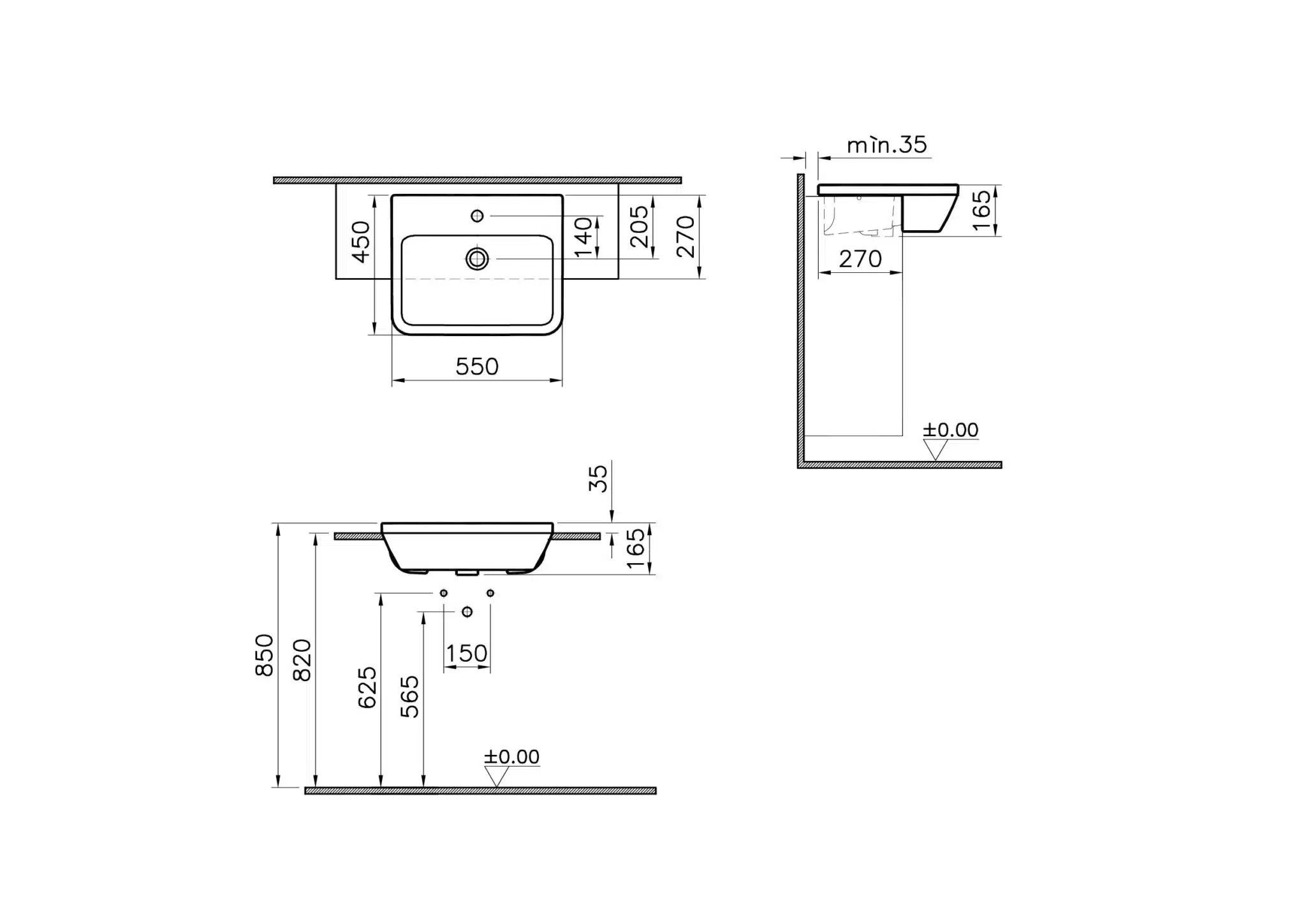 Vitra Integra 55 cm Beyaz Yarım Tezgah Lavabo