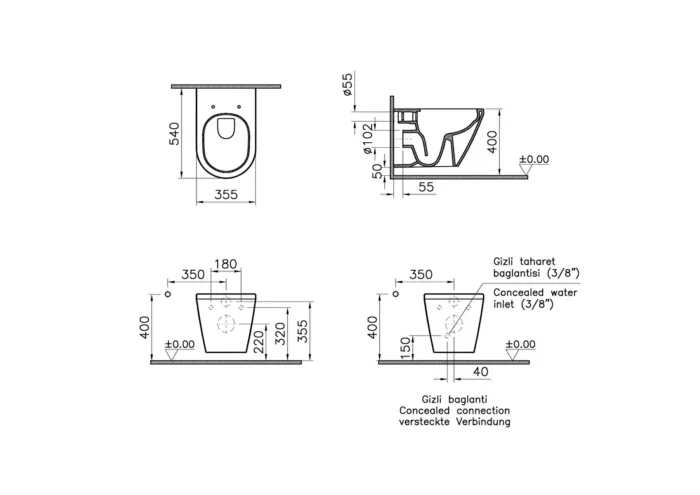 Vitra Integra Kanalsız Asma Klozet+Vitra Universal Klozet Kapağı Seti