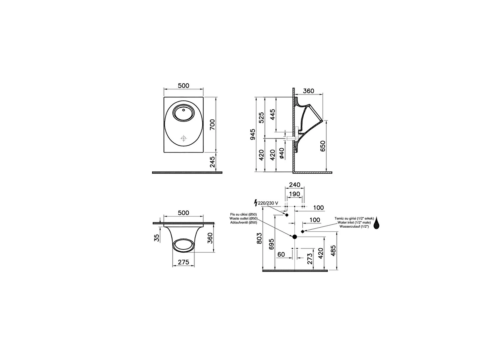 Vitra İstanbul Pisuvar Temassız Titreşimli Elektrikli Siyah