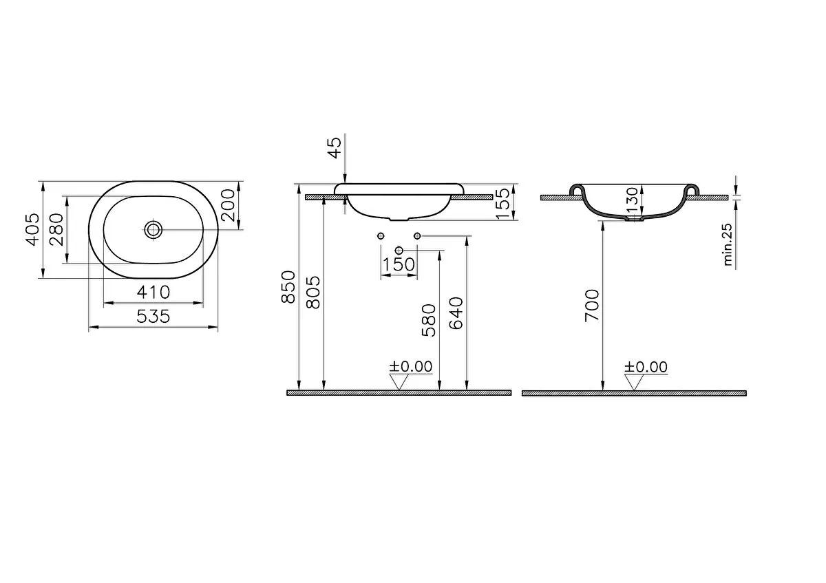 Vitra Liquid Tezgah Üstü Lavabo Oval Kompakt 53×40 cm Beyaz