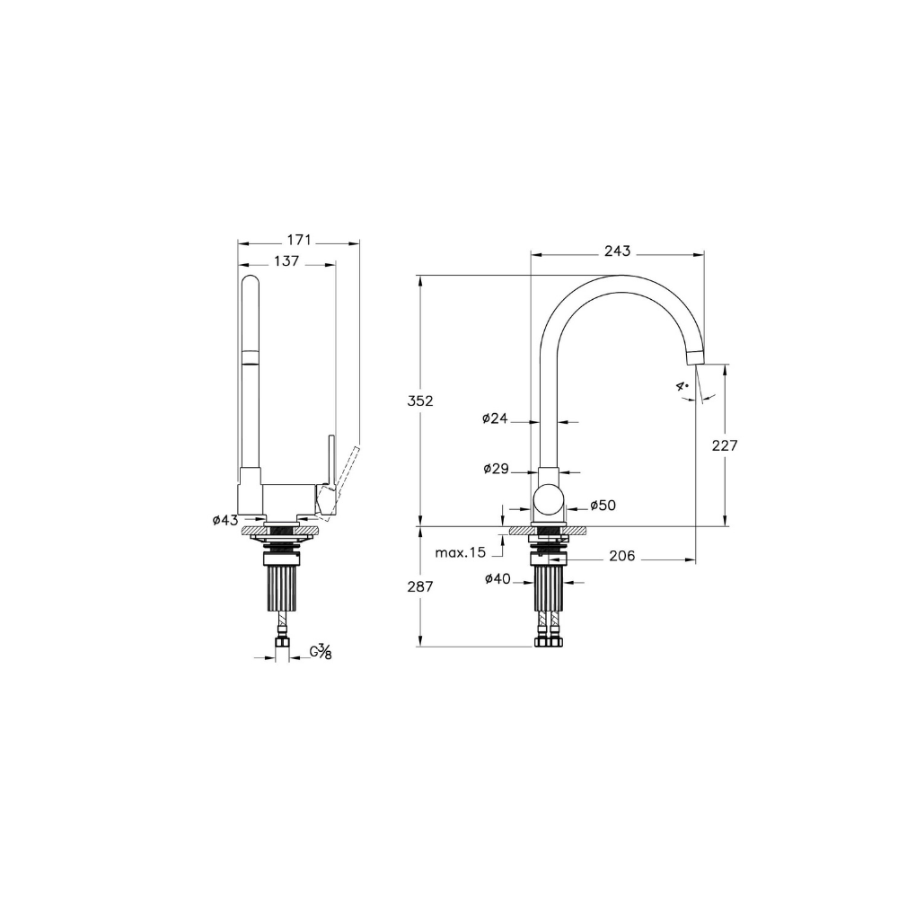 Vitra Masterline C Tipi Katlanır Eviye Bataryası, Mat Siyah