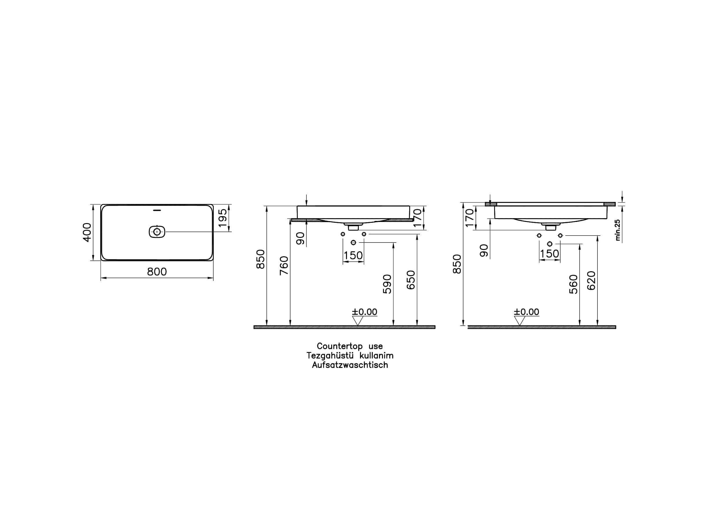 Vitra Metropole Çanak Lavabo Dikdörtgen, 80×40 cm Armatür Deliksiz, Su Taşma Delikli, Mat Siyah