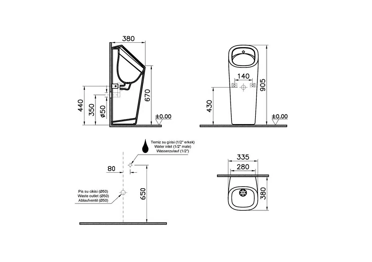 Vitra Plural Pisuvar Temassız Pilli Mat Siyah