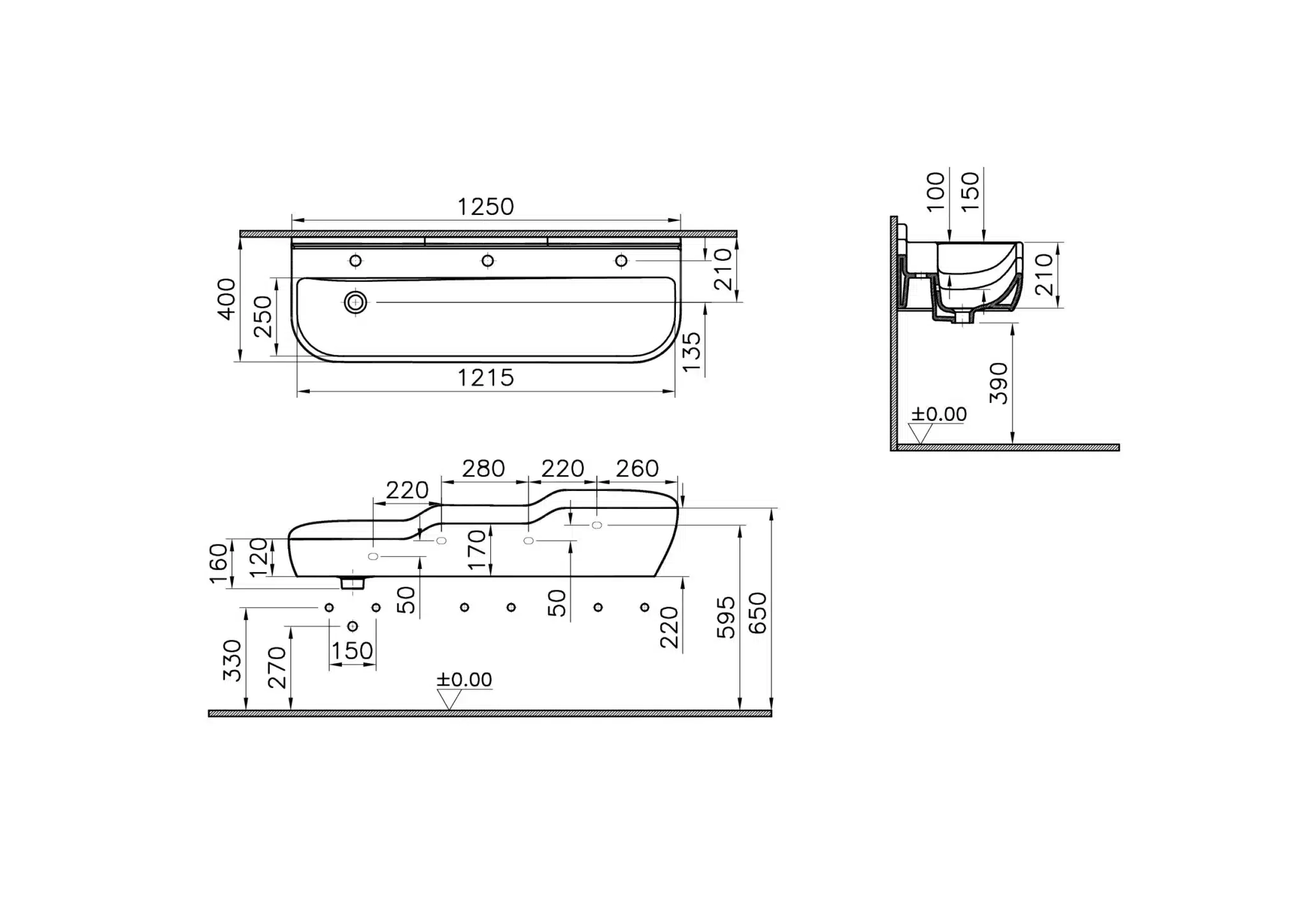Vitra Sento 125 cm Beyaz Çocuk Standart Lavabo